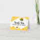 A colorful custom thank you card for any bee-themed event. Features a colorful bumble-bee with bright yellow and gold honeycomb design bordering the card.