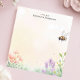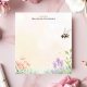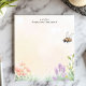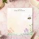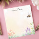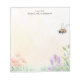 Bring the beauty of a blooming garden to your desk with this personalized notepad. The design features a charming honey bee buzzing above a delicate array of wildflowers and grasses. The soft, pastel background adds to the natural, peaceful feel. Customize this notepad with your own text for a truly personal touch. Perfect for jotting down notes, to-do lists, or garden plans.