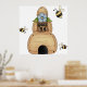 Brighten up your walls with this cheerful poster featuring a whimsical bee hive surrounded by buzzing bees and a floral accent. Perfect for bedrooms, playrooms, classrooms, or home offices, this playful artwork adds a touch of nature and charm to any space. A great gift for bee lovers and anyone who enjoys colorful, cartoon inspired designs.