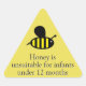 Honey bee hovers over a message to customers and friends: "Honey is unsuitable for infants under 12 months". Honey jar label can be customized for any purpose to use on the top cap or side of glass mason jars, plastic squeeze bottles and other honey containers. Find more small honey jar stickers and labels for honey granulation and nutrition facts in our store.