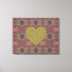 A vibrant heart pattern emerges from a kaleidoscopic background, featuring intricate designs in shades of yellow, pink, and green. The repeating motifs create a visually captivating and symmetrical composition.