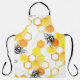 seamless watercolor pattern with honey bees and little cute bees. yellow and orange honeycomb on a white background.