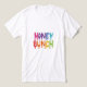 "A vibrant t-shirt with 'Honey Bunch.' dripping in rainbow hues, perfect for a playful and sweet look."