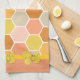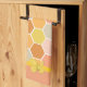 Colorful kitchen towel done in a stylish honey comb pattern. Cute graphics of yellow bumble bees decorate both top and bottom edges of the towel. Customize to add your own text.