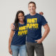 My 11 yo wore adult XL (5’7” 165#). The 8yo is small framed. She wore adult small and tied it in the back. Grandma wore adult large with long sleeve shirt underneath. Tall girl adult medium. Dark haired male adult large. Good quality dark Heather gray, Gildan brand shirt. -it was next up from basic choice and cost about $20 per shirt. Not too thick or thin. Washed and dried well, no major shrinkage. Not see-through. Can wear a bra under it fine. Screen print is just as shown and well done, front and back.