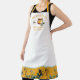 Brand your honey business name wearing this custom apron, with lovely artwork of a honeybee and jar of honey, on the top bib and green viney leaves, on the yellow bottom hem. Personalize the text for your bee keeping business. Great for use while selling your wears.