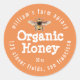 Modern and simple honey jar labels with the text organic honey and your business name and website or address in white stylish script typography on an orange background, features a vintage bee image. Simply add your apiary name, the product name and the weight to the label. Exclusively designed for beekeepers by Happy Dolphin Studio. If you need any help or matching products, please contact us at happydolphinstudio@outlook.com.
