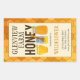 Three different honey jars in a row form a logo with the word "HONEY", over a cornsilk yellow background. Personalize the vertical honey jar sticker with the apiary or beekeeper name, type of honey, contact information and optional product features. Find the matching business card in the collection.