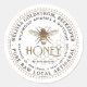 Custom Honey Label with vintage stylized illustration of honeybee in taupe and gold. Honeycomb pattern in background.The word "HONEY" is written in a metallic gold decorative font. Dotted circle border. Personalize with your name, apiary, location and cell phone.