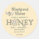A sweet pale yellow FDA-compliant label with a cheery bee and a stylized flower that replaces the "O" in the word honey.