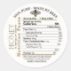 Honey Nutrition Facts 100% PURE with Honeybee Classic Round Sticker