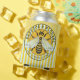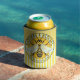 These bee-autiful, personalized can coolers are perfect for a honeybee theme wedding. They include an original hand-drawn bee on honeycomb with a background of yellow stripes and dripping honey. Use the easy templates to add the bride and groom names and the wedding date. You can also alter the "Love as Sweet as Honey" text. The design repeats on the back.
