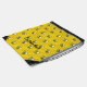 Smiling flying bee cartoon over seamless bee-hive background. Custom text.