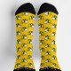 Smiling flying bee cartoon. Seamless pattern. Custom background color. Custom text on each sock.