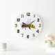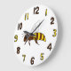 A clock with a cartoon honeybee and matching brown and yellow numbers.