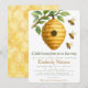Celebrate the sweetest occasion with this honeybee hive baby shower invitation! Featuring a charming honeybee hive nestled on a tree branch with flying bees buzzing around, this design sets the perfect tone for your honeybee baby shower theme. A cute illustration of a little honeybee symbolizes the mother to be, while a soft honeycomb background on the back adds texture and warmth. Styled with modern typography, this invitation highlights all the important baby shower details in a clear, elegant layout. Designed with a gender neutral theme, it’s the perfect choice whether you’re welcoming a little boy, girl, or keeping it a surprise. Sweet, playful, and full of buzz—this invitation is a lovely way to bring family and friends together to celebrate your newest addition!