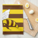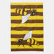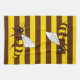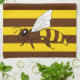 Two cartoon honeybees on a yellow and brown beestripes background. The bees face different ways, so that they'll both be the right way up when hung over a towel rail.