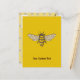 Honey bee with open wings. Custom background color. Custom text. Seamless pattern background at back side.