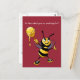 A cute honeybee holds up a honey stick dripping with honey. He asks: Is this what you're looking for? On the back of the postcard is a whole apple and an apple half and a Shana Tova greeting. You can easily customize and personalize this card by changing the background color on the front and by changing any of the text.