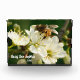 Bring the serenity of a spring garden to your desk with this elegant personalized acrylic photo block. Featuring a stunning high-definition original macro photo, it captures a delicate honeybee on a blooming white plum branch. The thick, crystal-clear acrylic enhances the depth and clarity, making the vibrant colors of the garden pop from every angle.