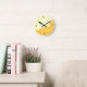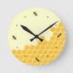 Custom wall clock for a kid's room with cute illustration of bees and honeycomb. Available in three different styles, you can also personalize this fun clock with custom text and/or images or change the background color.