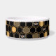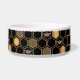 This contemporary design features a geometric gold color beehive pattern, bumblebees, and a black color background.