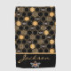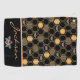 This contemporary design features a geometric gold color beehive pattern, bumblebees, and a black color background.