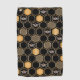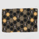 This contemporary design features a geometric gold color beehive pattern, bumblebees, and a black color background.