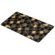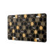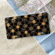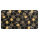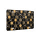 This contemporary design features a geometric gold color beehive pattern, bumblebees, and a black color background.