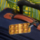 Unique luggage tag features artistic and colorful fractal art pattern - "Honeycomb" in shades of yellow and orange. Customize with personal monogram or name