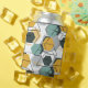 Honeycombs. Abstract geometric pattern. Gray, mustard, turquoise figures on white.
