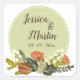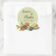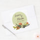 A joyful stickers in a soft green color with white polka dots, orange and cream flowers and foliage. (<a href='https://www.freepik.com/free-vector/collection-of-beautiful-floral-wedding-labels_1695810.htm'>Designed by Freepik</a>). <br/><br/>The sticker is easy to customize with your wording, font and font color.<br/><br/>Not exactly what you're looking for? All our products can be custom designed to meet your needs at no extra charge.<br/><br/>Simply contact us at askcottonlamb@gmail.com<br/><br/>Coordinating products available: