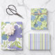 Add a unique touch to your gifts with this elegant gift wrap featuring florals, strawberries and stripes in a coordinating color palette of lime, blue and purple.