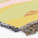 A quality printed throw has its advantages. This is a much finer weave throw than its loopier cousins, and though lighter, it is worth the investment for custom room accessorizing. The back is much prettier than the typical brown, and the fringe on the long sides very vivid, the selvage nicely done. Before photographing, I washed the throw in cold water, delicate, with a thicker woven throw the same size. On tumble dry low, this throw was dry in half the time as the other. This is a very practical quality if you use throws for furniture covers or to wrap up in frequently. The sleekness of the fabric makes it a great layer for accenting or protecting without the feeling of sitting on too much stuff. Perfect for napping or when you feel a light chill coming on. The color printing is beautiful and on this fabric, matched the design and color of my Photoshop image. This is an advantage for blending room fabrics and colors. The fringe on the short sides prints the colors from the design image and therefore varies from the side fringe. I streaked a white fractal line through the plaid pattern to give the illusion of weaving. This printed as crisp as an illusory thread, and put some white in the short side fringe, showing another advantage of print vs loomed- for artistic purposes, line lines, detail, and color integrity can be planned and preserved. My loomed throws have color limitations and more of a needlepoint texture. Print throws reproduce an exact image. The throw felt a little stiff straight out of the package, but this went away in the first delicate wash. Of course I searched the wash water for ink or bleeding and there was none.