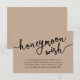 Celebrate the beginning of your journey together with our elegantly rustic modern brown kraft theme, crafted "honeymoon wish" wedding invitation enclosed card, wish, cash. Featuring a sophisticated blend of modern script and romantic allure, each card is meticulously designed to convey the essence of your special day. Perfectly suited for couples seeking a unique way to share their honeymoon dreams, this card invites your loved ones to contribute towards unforgettable experiences. Whether nestled in a luxurious envelope or presented alongside your wedding invitations, our card adds a touch of enchantment to your celebration, promising cherished memories that last a lifetime. Designed by TeeshaDerrick.