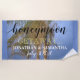 Honeymoon Getaway beach or destination wedding theme. Personalize with the newlyweds first names in white text and date of wedding. Honeymoon is written in black script. Getaway is written in a cool yellow font. Background has blue sky with pretty close-up of three palm trees with fronds blowing in the ocean breeze. Fun keepsake beach towels for the newlyweds. Original Photography and Design © TamiraZDesigns.