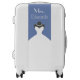 Lovely and one of a kind, this all white ugobags suitcase features a blue background with a white wedding gown. A place to personalize your name is in the center, purchase yours today!