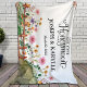 Beautiful honeymoon personalized blanket had watercolor blush wildflower hill garden with bride's and groom's custom names on it.