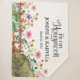 Beautiful honeymoon personalized blanket had watercolor blush wildflower hill garden with bride's and groom's custom names on it.