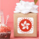 The emblem features the same design elements as the regional Flag of Hong Kong in a circular setting. The outer white ring is shown with the caption of the official name of the territory in Traditional Chinese and the English short form, "Hong Kong".