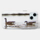 The Canada Goose, Branta canadensis, has a black head and neck, white patches on the face, and a brownish-gray body. The black head and neck with white "chinstrap" distinguish the Canada Goose from all other goose species, with the exception of the Barnacle Goose, but the latter has a black breast, and also gray, rather than brownish, body plumage. The Canada Goose ranges 30 to 43 inches in length and has a 50 to 73 inch wingspan. Males usually weigh 7.1–14 lbs and can be very aggressive in defending territory. The female looks virtually identical but is slightly lighter at 5.5–12 lbs, and has a different honk. The life span in the wild of geese that survive to adulthood ranges 10–24 years Canada Geese are native to North America. They breed in Canada and the northern United States in a variety of habitats. Nests are usually located in an elevated area near water such as streams, lakes, ponds and sometimes on a beaver lodge. Eggs are laid in a shallow depression lined with plant material and down. In recent years, Canada Goose populations in some areas have grown substantially, so much so that many consider them pests for their droppings, bacteria in their droppings, noise, and confrontational behavior. This problem is partially due to the removal of natural predators and an abundance of safe, man-made bodies of water such as found on golf courses, in public parks and beaches, and in planned communities. Due in part to the interbreeding of various migratory subspecies with the introduced non-migratory Giant subspecies, Canada Geese are frequently a year-around feature of such urban environments. Canada Geese have reached northern Europe naturally, as has been proved by ringing recoveries. The birds are of at least the subspecies parvipes, and possibly others. Canada Geese are also found naturally on the Kamchatka Peninsula in eastern Siberia, eastern China, and throughout Japan. Like most geese, the Canada Goose is migratory with the wintering range being most of the United States. Honking from large groups of Canada Geese flying in V-shaped formation signal the transitions into spring and autumn. In some areas, migration routes have changed due to changes in habitat and food sources. In mild climates from California to the Great Lakes, some of the population has become non-migratory due to adequate winter food supply and a lack of former predators. Canada Geese are primarily herbivores, although they sometimes eat small insects and fish. Their diet includes green vegetation and grains. The Canada Goose eats a variety of grasses when on land. It feeds by grasping a blade of grass with the bill, then tearing it with a jerk of the head. The Canada Goose also eats grains such as wheat, beans, rice, and corn when they are available. In the water, it feeds from silt at the bottom of the body of water. It also feeds on aquatic plants, such as seaweeds. In urban cities, they are also known to pick food out of garbage bins. Adult geese are often seen leading their goslings in a line, usually with one parent at the front, and the other at the back. While protecting their goslings, parents often violently chase away nearby creatures, from small blackbirds to lone humans that approach, after warning them by giving off a hissing sound and will then attack with bites and slaps of the wings if the threat does not retreat or has seized a gosling. Most of the species that prey on eggs will also take a gosling. Although parents are hostile to unfamiliar geese, they may form groups of a number of goslings and a few adults, called crèches.