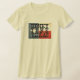 My overall review is that the T-shirt is nice, it fits true to size however the font is significantly smaller than advertised and you can't read it. The printing is unreadable and there is a strain to read it. It does not look like the advertised product. Maybe the shirt color is darker or a larger more visible font should have been used. Photos with and without flash and font is barely legible.