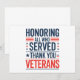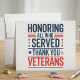 Honoring All Who Served Thank You Veterans features bold patriotic lettering in red and blue with star accents on a clean white background. The strong typographic design expresses gratitude and respect for veterans in a clear and meaningful way. This artwork is a thoughtful choice for Veterans Day, military appreciation, and patriotic messages that honor service and sacrifice.
