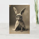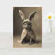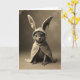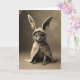 Designed with a sepia-toned portrait style, the card features a small cat-like creature centered in the frame, wearing an oversized hooded cloak with long bunny ears 🐰. It sits upright with a gentle, almost regal posture, looking straight ahead as if meeting a friend’s eyes across the room. Soft, diffused light falls across its fine facial fur and the plush folds of the cloak, giving the scene a quiet, tender mood. The creature’s large, glossy dark eyes catch tiny highlights that feel like a shared secret, while delicate whiskers fan out from its small muzzle. The tall costume ears rise above its head like a sweet disguise, adding a hint of shy romance to the pose 🐇. A short greeting line appears near the top in a muted cream tone, with a smaller line of text placed near the bottom in a darker brown for balance. The edges of the image look lightly worn and textured, like an old photo border around the warm-toned scene.