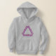 Trendy grey hoodie featuring bold and artistic triangle typography design.