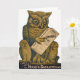 Three owls on a branch with a box of Hood's Sarsaparilla restorative tonic in a die-cut stand-up advertisement; list of pills, soap, and other preparations with descriptions and prices on verso.