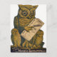 Three owls on a branch with a box of Hood's Sarsaparilla restorative tonic in a die-cut stand-up advertisement; list of pills, soap, and other preparations with descriptions and prices on verso.