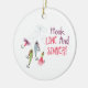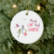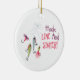 Lightweight, smooth, pure white ornament with nice sheen. Perfect size to be seen from across the room ... and to attract closer inspection! Price was great for ordering enough for the whole family! Clear, bold black design just as requested. Matches the order exactly. Just so nice!