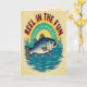 Celebrate your love for fishing with this vibrant design that captures the thrill of the catch! Featuring a dynamic fish leaping from the water against a stunning sunset, this card is perfect for adventurers and fishing enthusiasts.