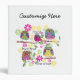 Hootie Owl T-shirts, mugs, bags, cards, stickers, tote bags, magnets, mousepads, wall clocks, pillows, journals, and more, colorful and fun, features five owls on branches surrounded by flowers of magenta, yellow, and green!